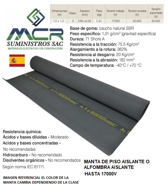 alfombra dieléctrica de piso de 1x1mts hasta 17000V CLASE 2 EUROPEO