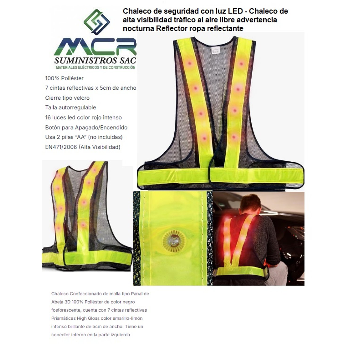 CHALECO DE SEGURIDAD CON LED INTEGRADO Y CINTAS REFLECTIVA FLUORESCENTE