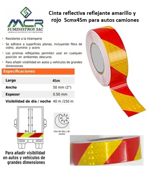 Cinta reflectiva reflejante amarillo y rojo 45m para autos camiones