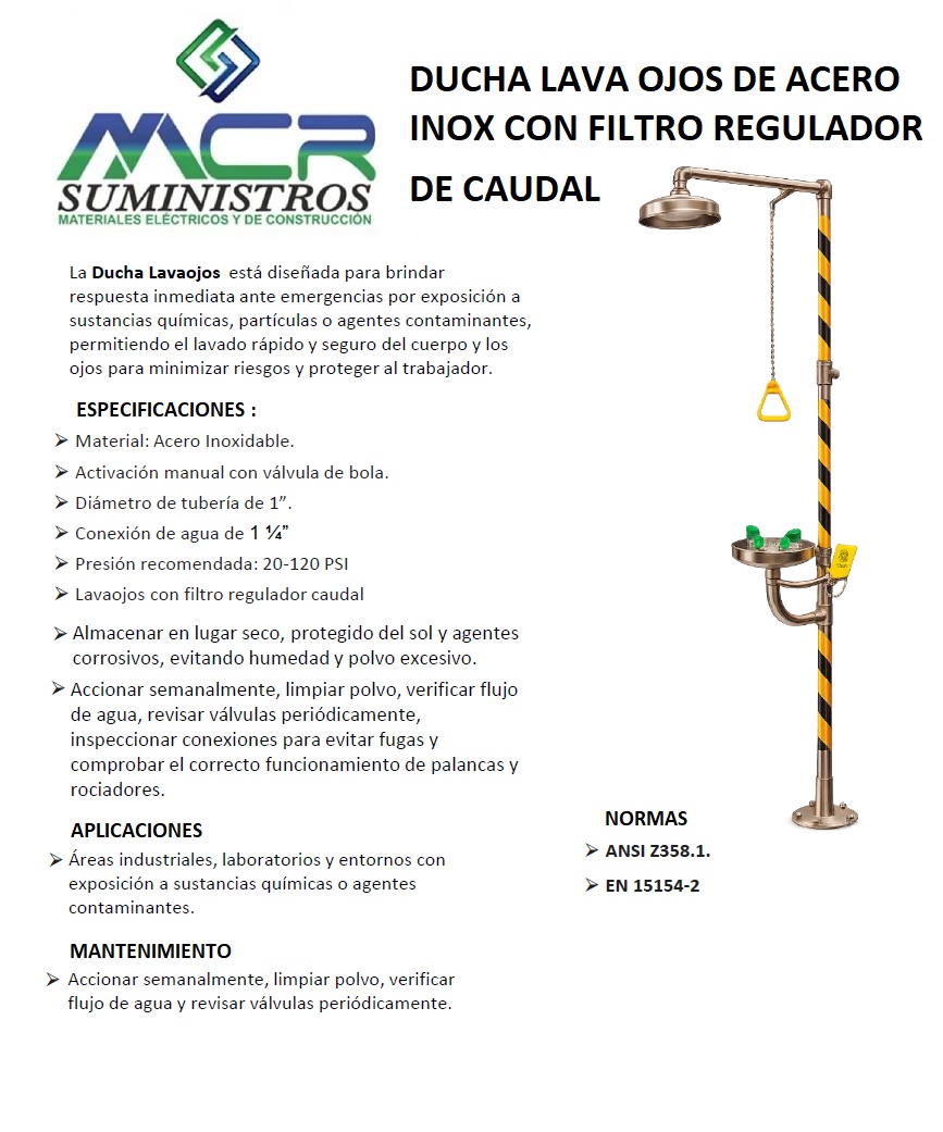 DUCHA LAVAOJOS DE ACERO INOX CON FILTRO REGULADOR DE CAUDAL