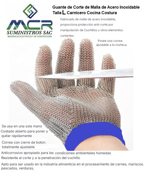 Guante de Corte de Malla de Acero Inoxidable TALLA L para Carnicero, Cocina, Costurero etc